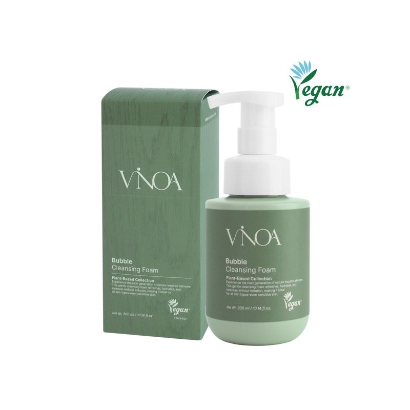 Vinoa Bubble Vegan Cleansing Foam 300ml / Low-irritation foam cleansing microbubbles, officially certified vegan / 비노아 버블 비건 클렌징폼 300ml 저자극 폼클렌징 미세거품 공식비건인증