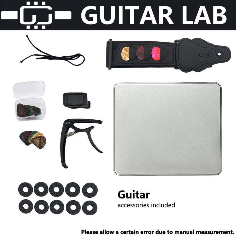 - Ultimate Guitar Gift Box in Branded Metal Tin – Professionally packaged with leather guitar strap and zinc alloy capo, this set suits acoustic, bass & electric guitars. A ready-to-gift solution for birthdays, Christmas, or Father’s Day – perfect for guitar-obsessed men, women, and teens