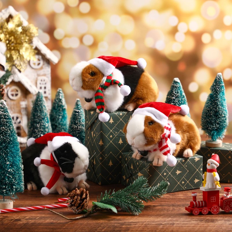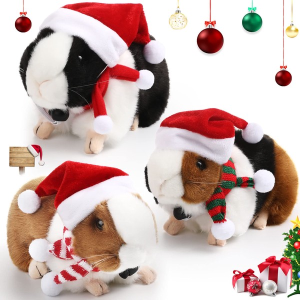 - Package Contains: there are 3 pieces of guinea pig stuffed animals in different colors, coming with 3 pieces of Santa hats and 3 pieces of Santa scarfs, sufficient quantity can nicely satisfy your playing or decorating needs