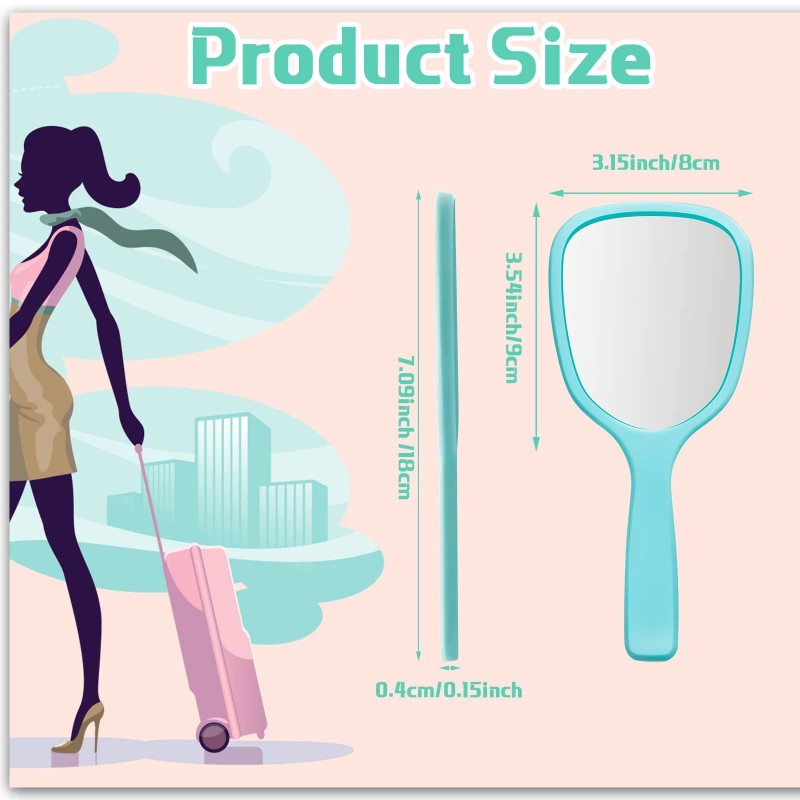 Compact and Lightweight: the plastic hand mirrors measure approx 7.09 inches in length and 3.15 inches in width, which makes it portable, so you can easily and stably hold it and carry it around, leaving you a nice using experience, and the right size makes the use or storage of them at some places you want without taking up too much space