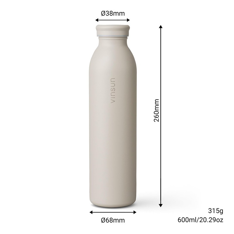 Vinsun Drinking Bottle Stainless Steel 600 ml Beige – Leak-Proof, Suitable for Carbonated Drinks, BPA-Free, Double-Walled Insulated, Lightweight Thermal Flask for Sports, School, Office, Travel