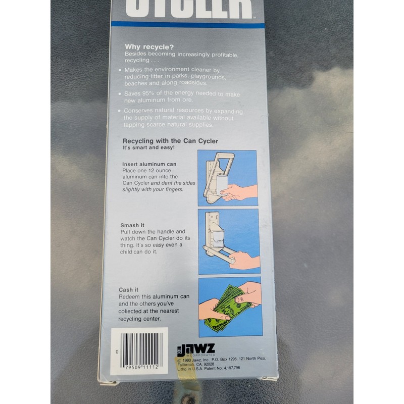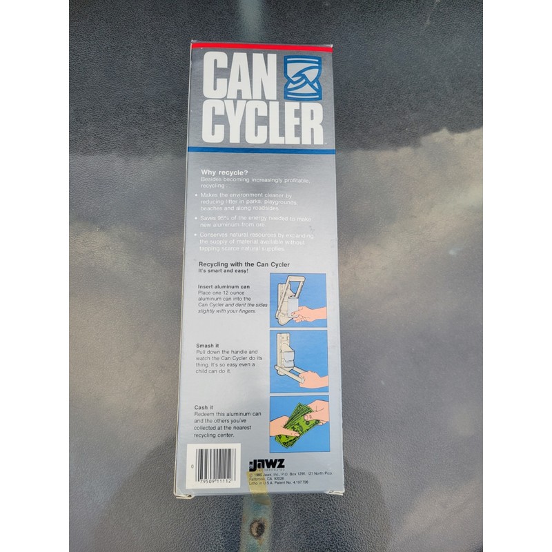 Vintage 1980 Jawz Aluminum Soda Beer Can Cycler Crusher. New in the box. Comes with the screws and instructions. If you have any questions dont hesitate to ask.