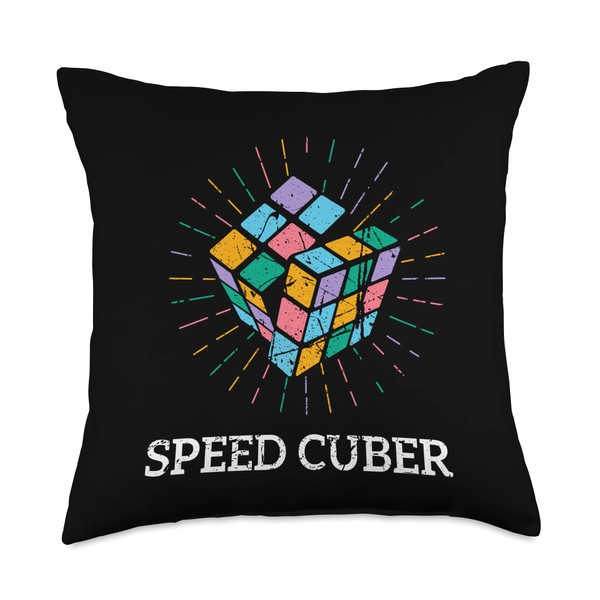 Vintage 80s Speed Cuber Puzzle Cube Fan Master Cube Throw Pillow