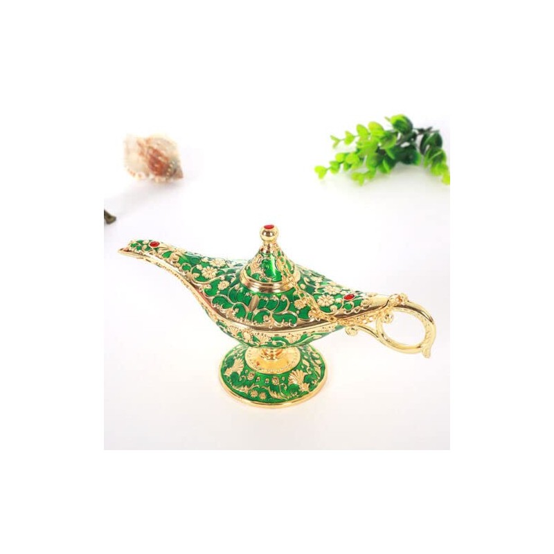 Vintage Aladdin Magic Genie Lamps Classic Collectable Light Lamp for Home Table (Large Green)