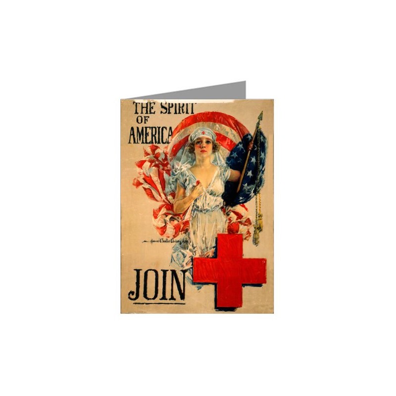 Vintage Art Cards Twelve Notecards Of Patriotic Poster From WW1 And WW2 Featuring The Spirit Of America, To Join The American Red Cross