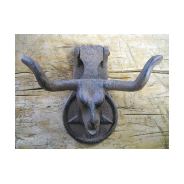 Vintage Cast Iron Antique Style Rustic LONGHORN STEER Door Knocker Western Cowboy COW