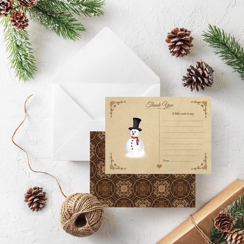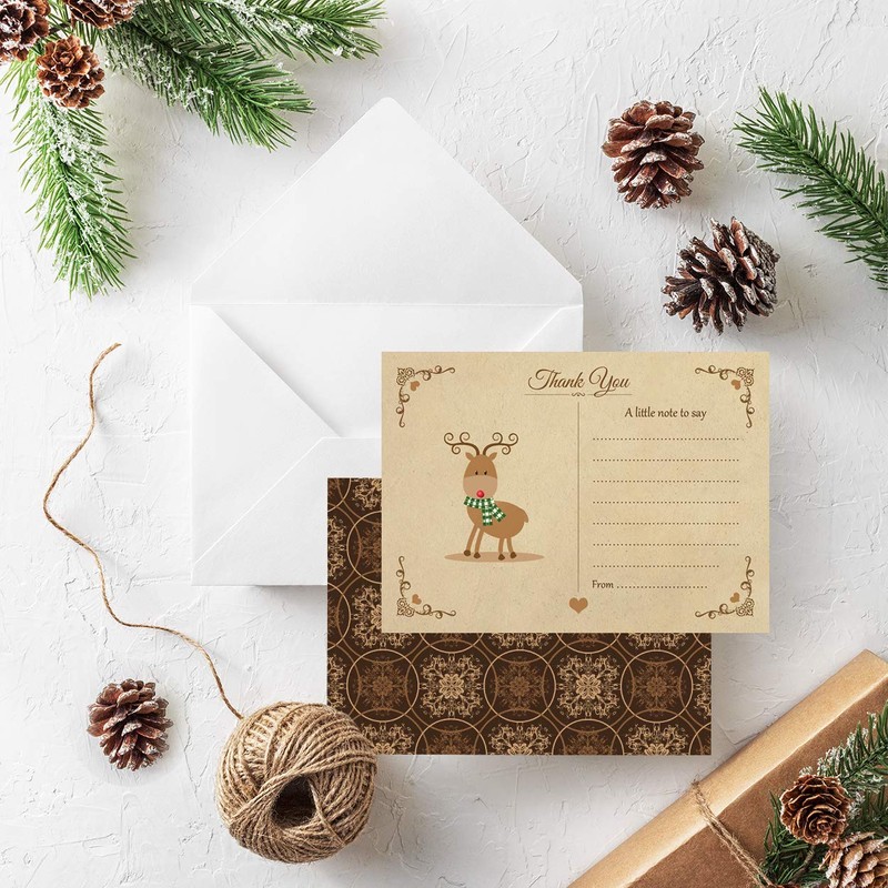Vintage Christmas Thank You Note Cards With White Envelopes - Pack of 20 - Four Of Each Design