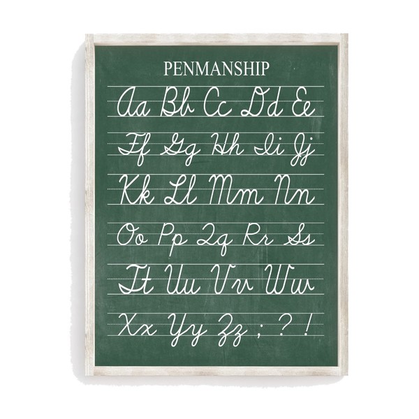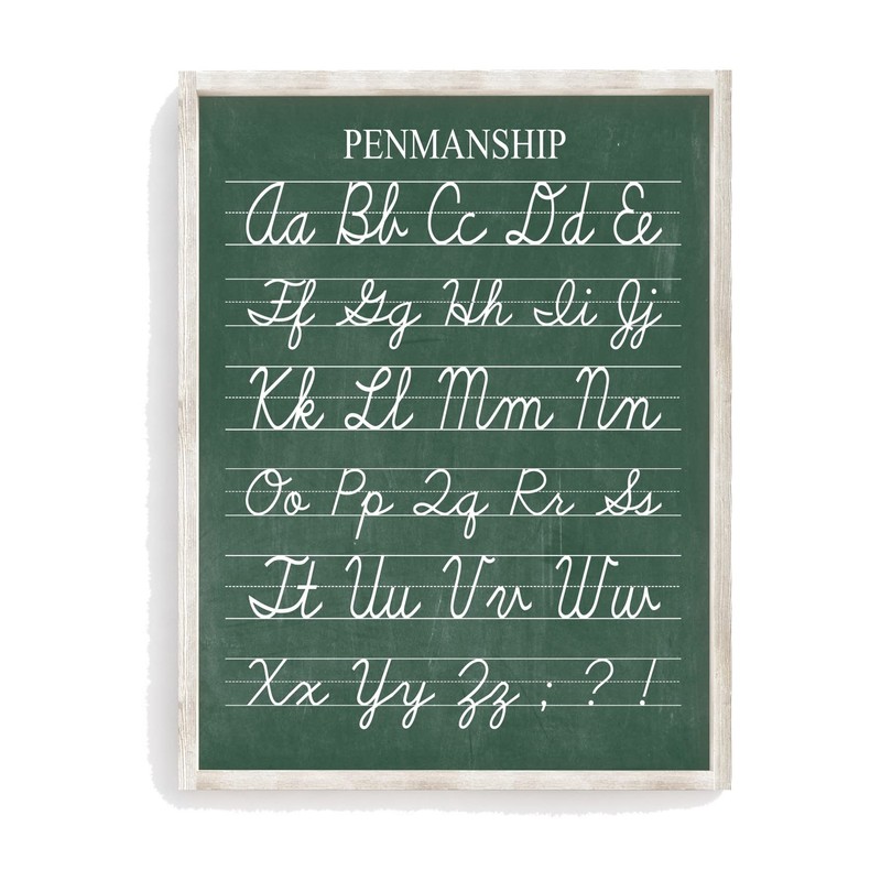 Vintage Cursive Alphabet Penmanship Classroom Distressed Green Chalkboard Unframed Print