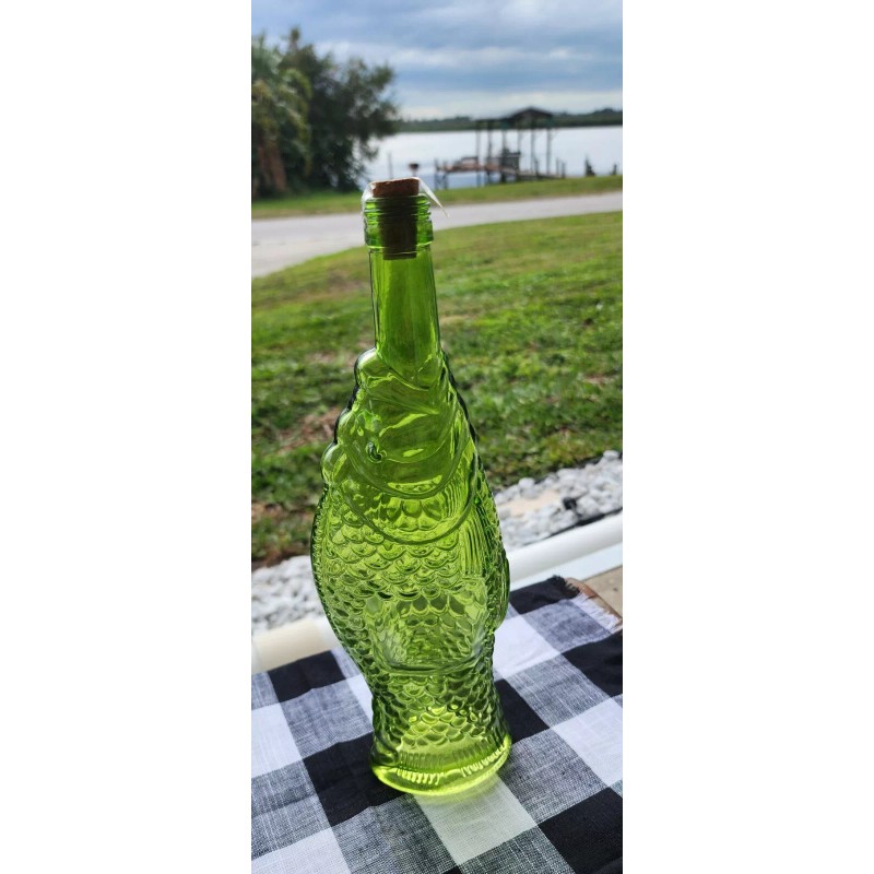 Vintage Decanter Fish Shaped Glass 13" Green Italian Wine Bottle
