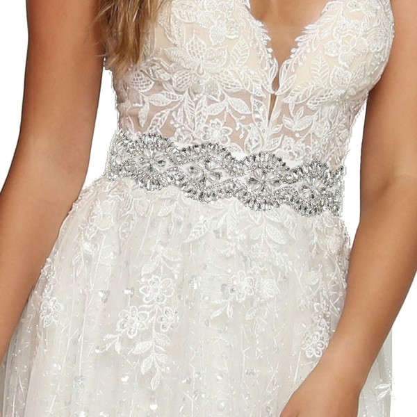 - Designed with intricate rhinestone and pearl embellishments, this wedding belt adds a touch of sparkle and sophistication to any wedding dress.