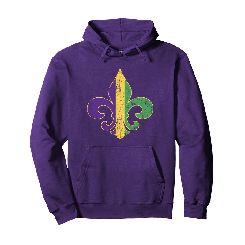 Vintage Distressed Mardi Gras Fleur De Lis Pullover Hoodie
