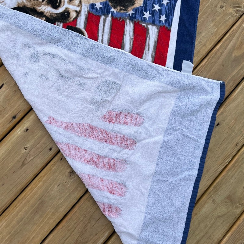 Vintage Dog Beach Towel Blue Red Patriotic American Flag Labrador Hound