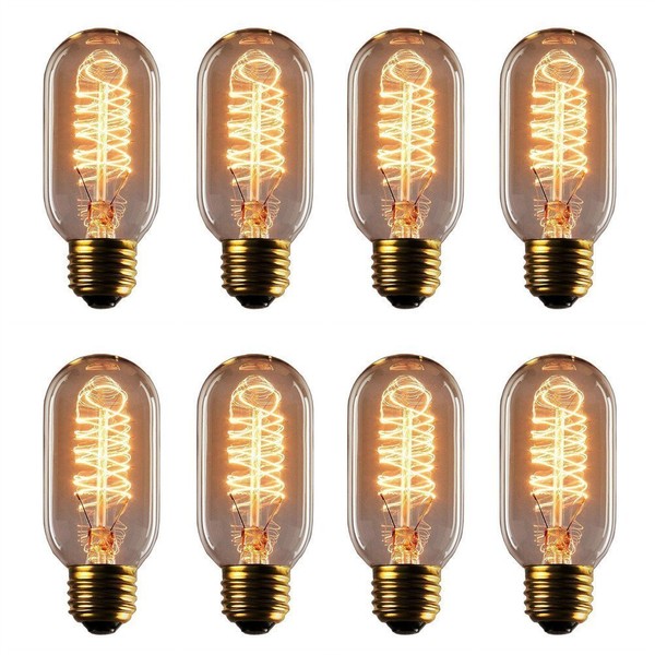 Vintage Edison Bulb - 25 Watt - T45 - Spiral Cage Filament - Dimmable - 8 Pack - 65 Lumen