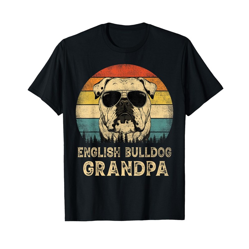 - With a graphic dog wearing sunglasses and a vintage sunset background, this is a funny idea for a English Bulldog grandpa's birthday or Fathers Day.