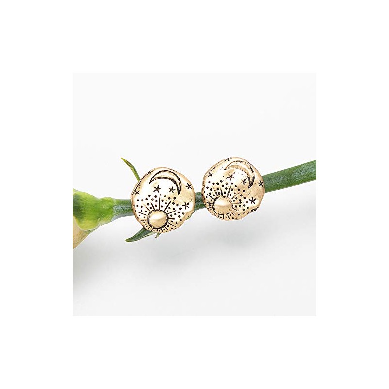 Vintage Gold Silver Tiny Sun and Moon Planet Circle Stud Earring Mini Earrings (gold)