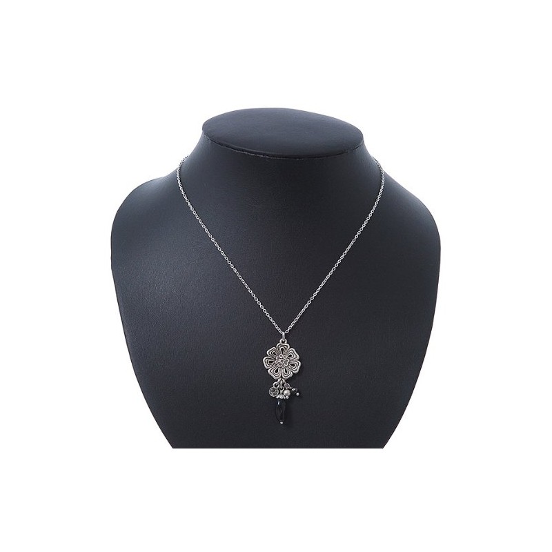 Vintage Inspired Flower and Charms Pendant with Silver Tone Chain - 38cm Length/ 8cm Extension