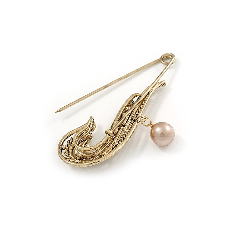 Vintage Inspired Large Topaz Crystal Wing Safety Pin Brooch In Gold Tone Metal - 80mm L
