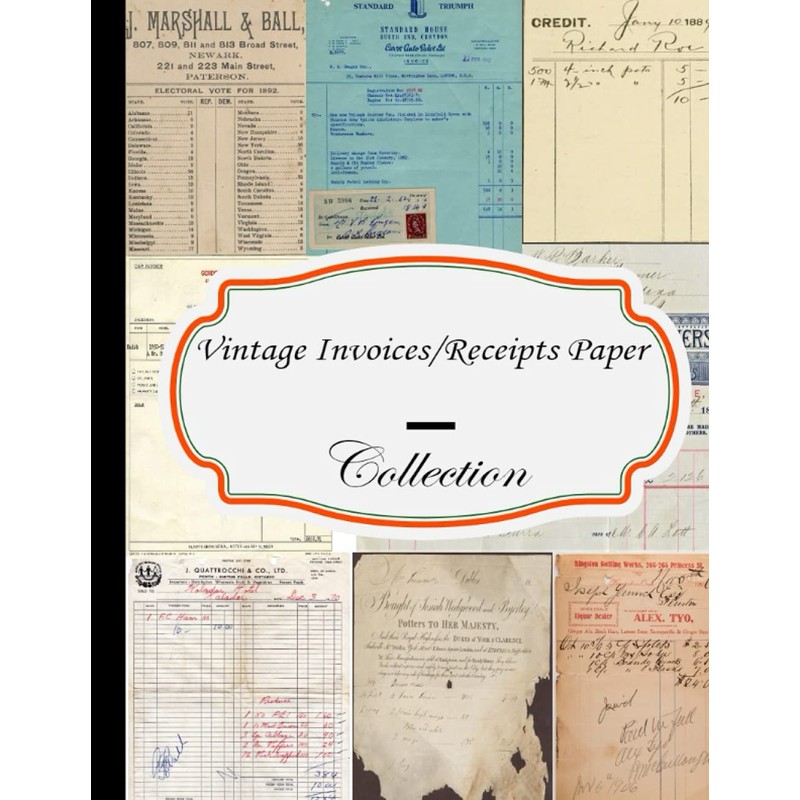 Vintage Invoices/Receipts Paper Collection: A Beautiful Set of Old Vintage Invoices Paper for Collage, Papercrafts, Bookmaking, Junk Journaling, Mixed Media and more