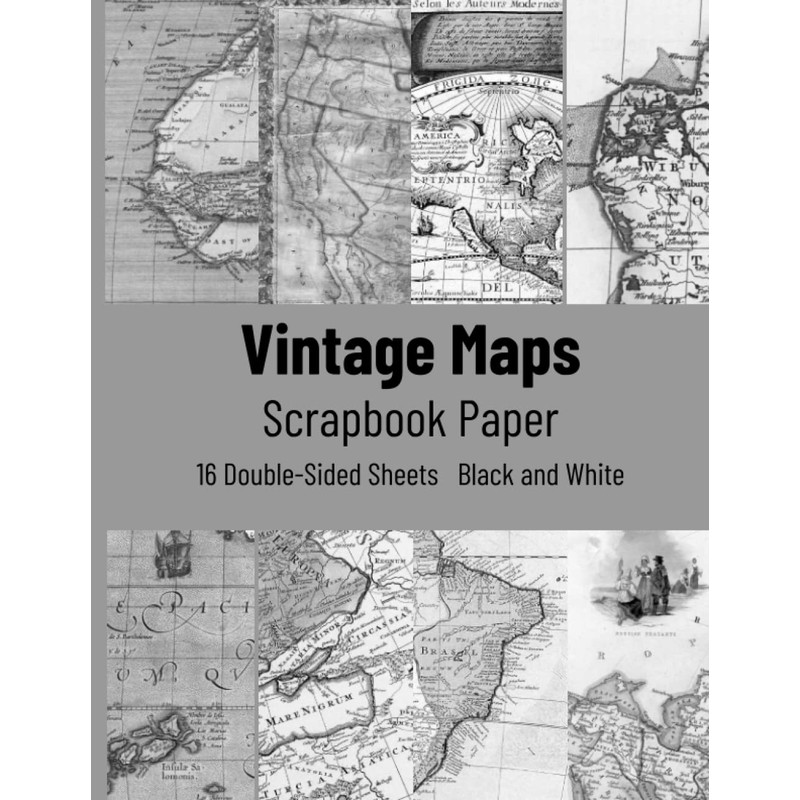 Vintage Maps Scrapbook Paper: Antique World Map For Scrapbooking, 16 Double Sided Craft Paper Pad For Scrapbooking in black and white, Mixed Media ... Crafting projects, Origami, and more