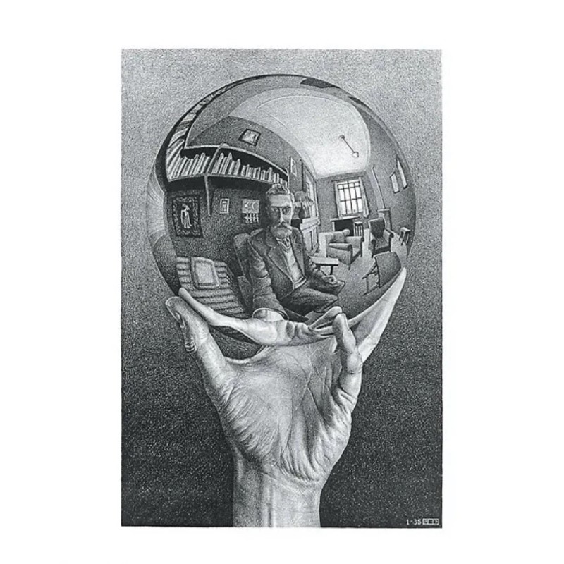 Vintage MC Escher HAND WITH REFLECTING SPHERE 1935 Self-Portraits Reprint 23x29