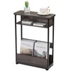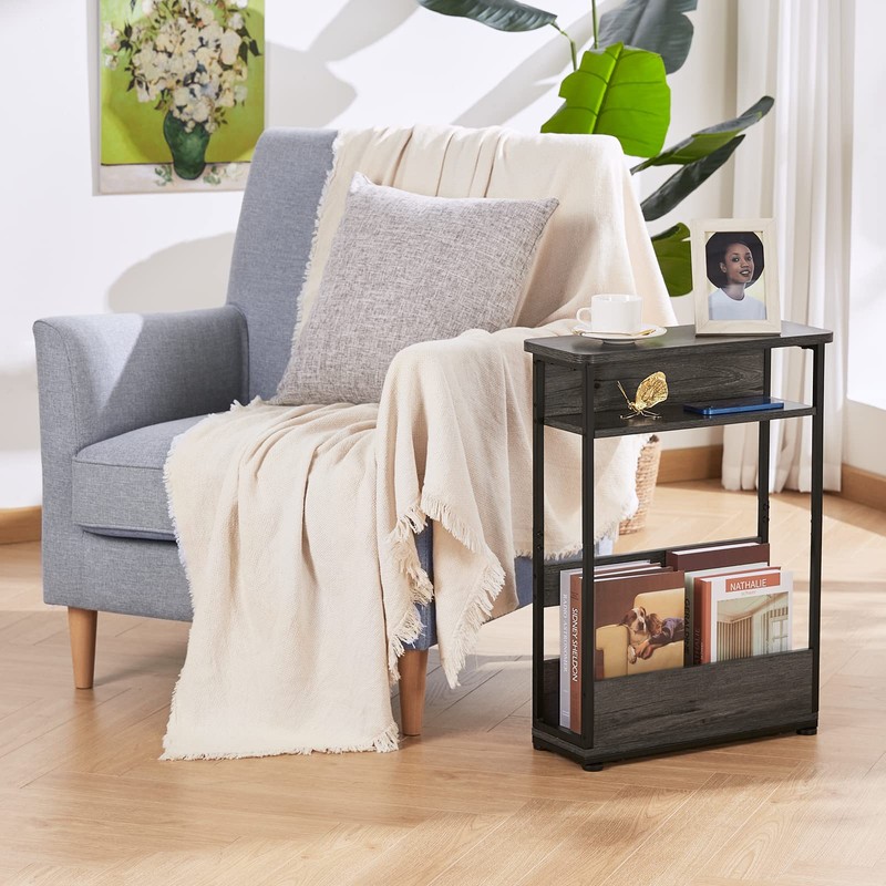 Vintage Narrow Side Table with Storage Shelf, 3 Tier Slim End Table Modern Sofa Table for Narrow and Small Spaces, Bedside Table Small Nightstand with Magazine Rack/Grey