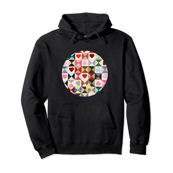 Vintage Quilt Pattern Squares and Hearts Pullover Hoodie