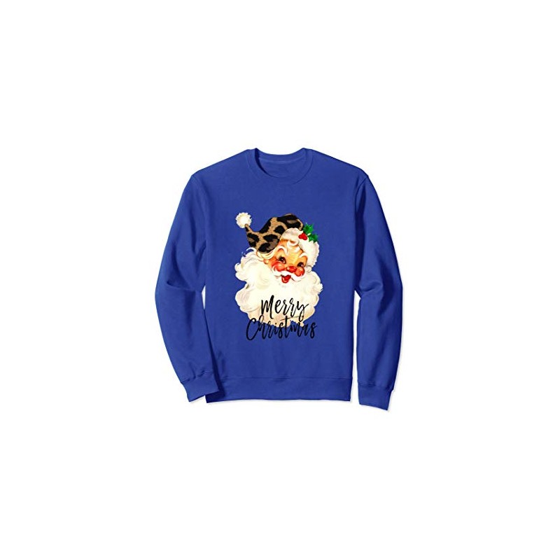 Vintage Santa Leopard Print Hat Merry Christmas Design Sweatshirt