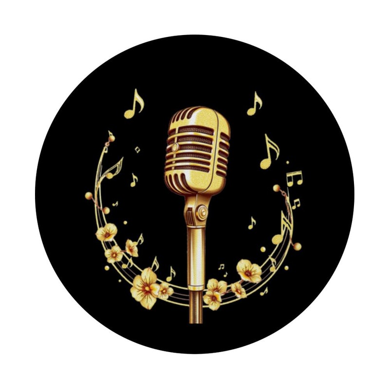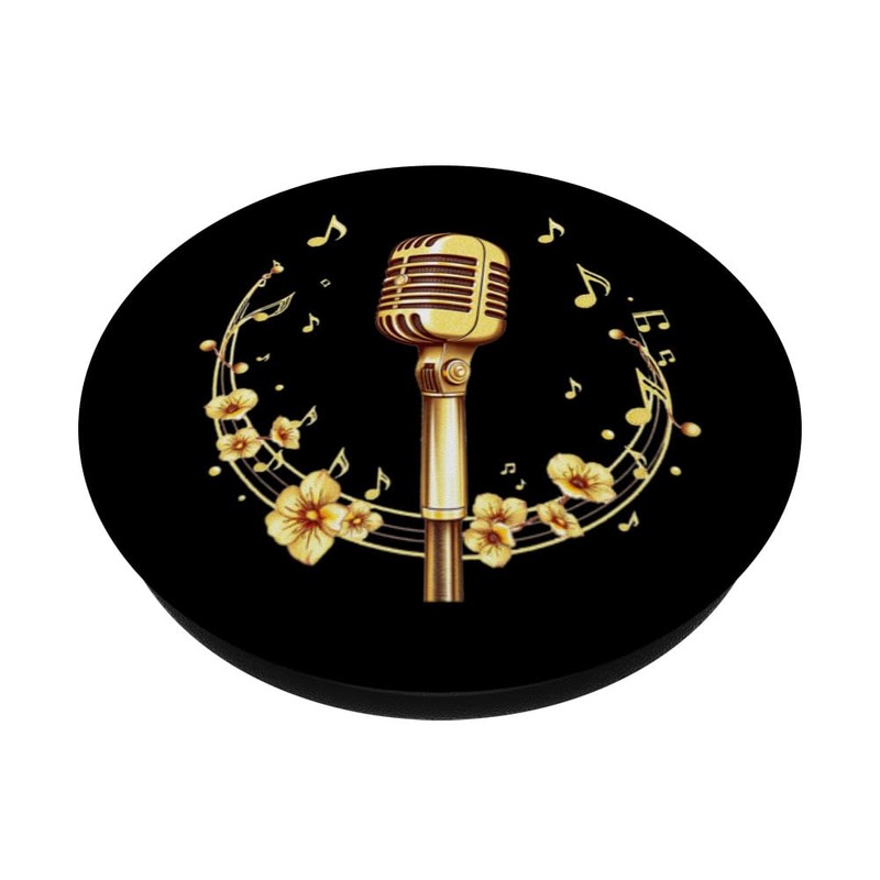 Vintage Stage Mic Microphone with Music Notes Clef Musician PopSockets Adhesive PopGrip