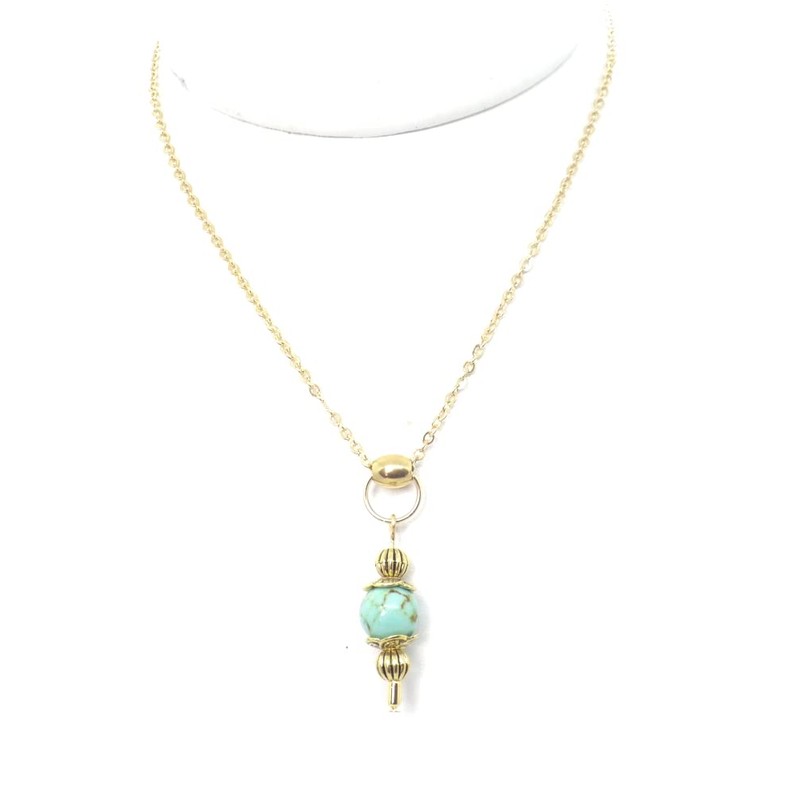 Vintage style stainless steel women's choker necklace and earrings jewelry set with blue bonded turquoise pendant