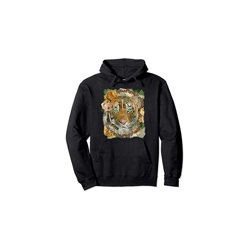 Vintage Tiger Face Leopard Print Roses Camouflage Wild Cat Pullover Hoodie