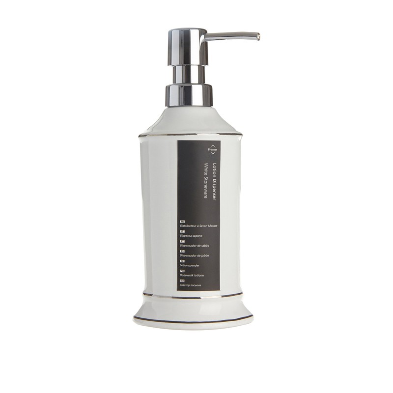 Premier Housewares Le Bain Lotion Dispenser, Stoneware, White, W8 x D8 x H20cm