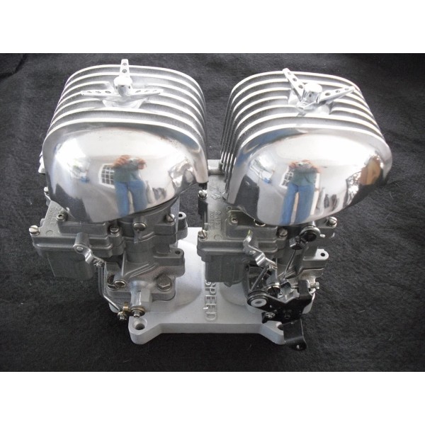 Here is our new VINTAGE SPEED finned 2 barrel air cleaner. This unit matches your finned valve covers and comes with the base assembly and Fram element. Comes with set screw to attach to your Holley 94's--Stromberg and Rochesters 2 barrels with 2 5/8" tops. Shrouded style and special shape give maximum smooth undisturbed air flow. Show polished cast aluminum top, polished cast base and a fram element. Three bar chrome wing nut. Our bases are machine bored for a perfect fit on your carb top. Dump the Taiwan chrome and billet and get yourself real nice looking nostalgia looking air cleaners. All our parts made in the good 'ol USA. Check our feedback and see what they say about my quality. If this item is won with other items that specify USPS shipping, then all items will be shipped via USPS. If this item is won with other items that specify UPS shipping, then all items will be shipped via UPS. This auction is for one (1) air cleaner. Picture depicts three air cleaners on a tri-power set-up, but the auction is for one (1). If you want more than one click on the quantity link above.