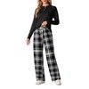 VINTATRE Womens Pajama Sets 2 Piece Long Sleeve Lounge Set Soft Sleepwear Pjs Set with Pockets Black White Plaid L