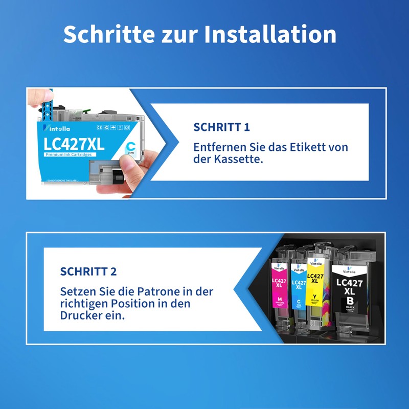 Product name: Vintella LC427XL LC-427XL cartridges with latest chip compatible with Brother LC427 LC427XL LC-427XL LC-427VAL LC-427XLVAL LC427XLVAL ink cartridges value pack (LC-427XLBK, LC-427XLC, LC-427XLM, LC-427XLY, not original)