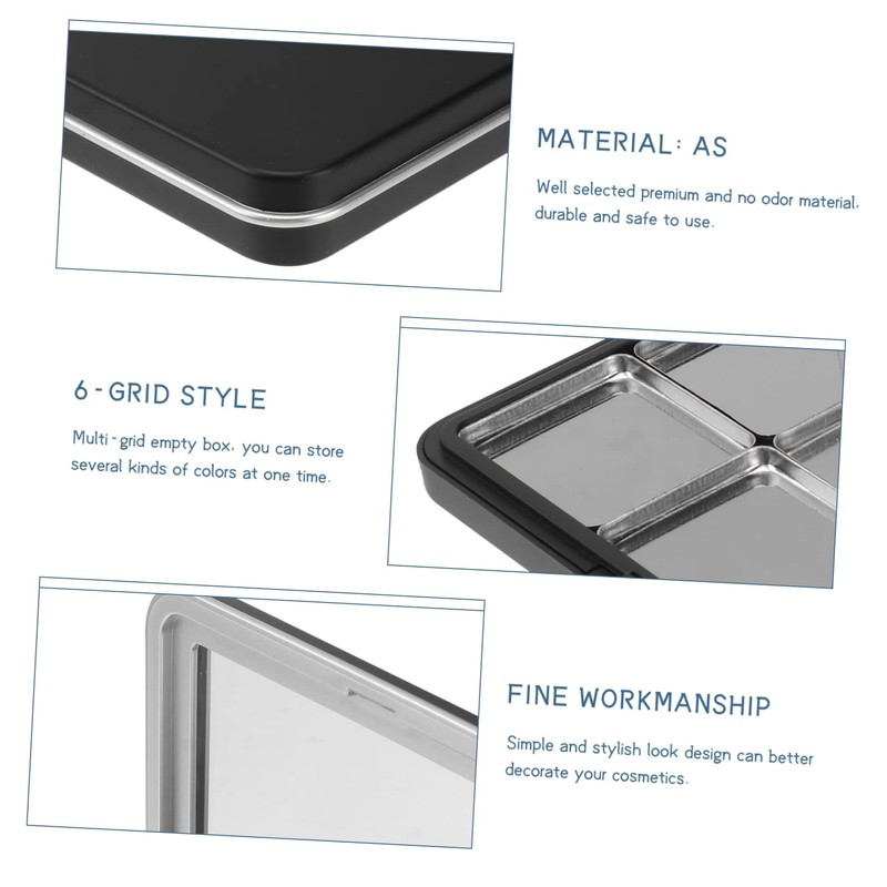 • Empty metal palette - The empty eyeshadow box is simple designed, convenient and practical to use.