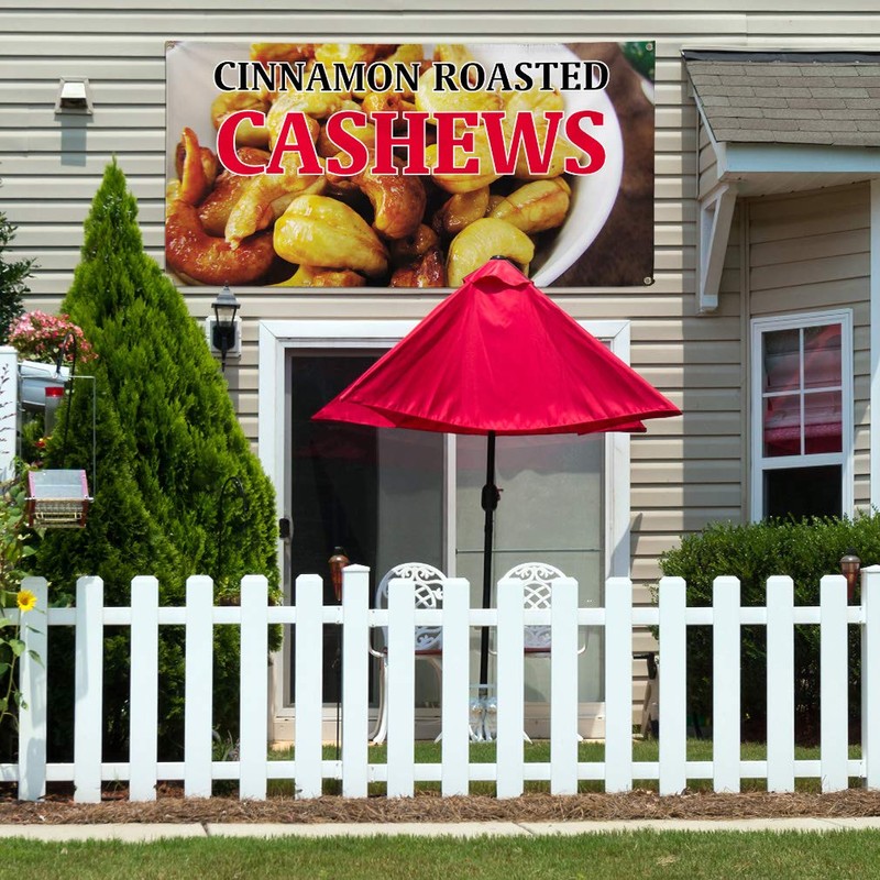 Vinyl Banner Multiple Sizes Cinnamon Roasted Cashews Restaurant & Food Outdoor Weatherproof Industrial Yard Signs White 4 Grommets 16x40Inches