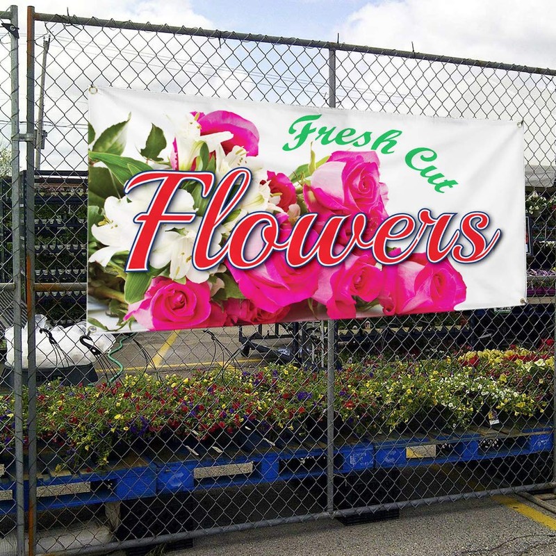 Vinyl Banner Multiple Sizes Fresh Cut Flowers Business B Business Outdoor Weatherproof Industrial Yard Signs Pink 4 Grommets 24x48Inches