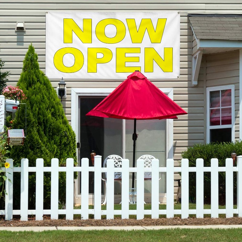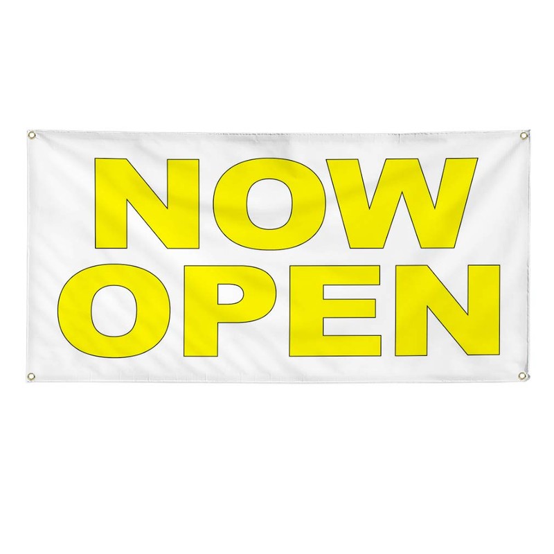 Vinyl Banner Multiple Sizes Now Open Yellow Business Outdoor Weatherproof Industrial Yard Signs 10 Grommets 60x144Inches