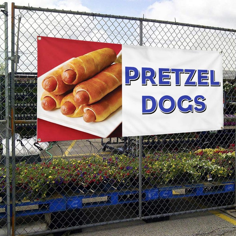 Vinyl Banner Multiple Sizes Pretzel Dogs Restaurant Cafe Bar A Restaurant & Food Outdoor Weatherproof Industrial Yard Signs White 4 Grommets 24x48Inches