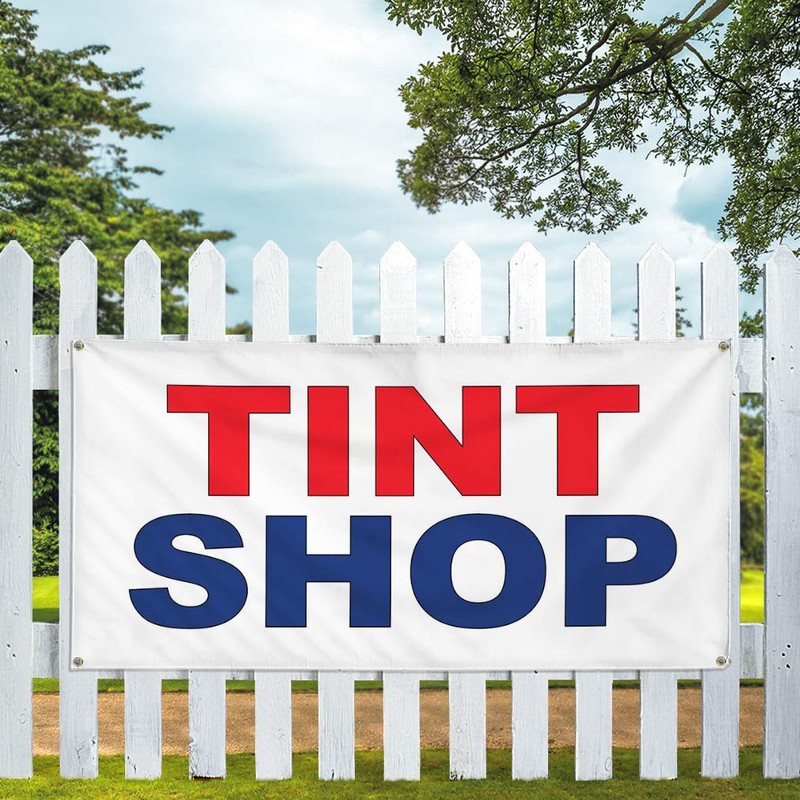Vinyl Banner Multiple Sizes Tint Shop Red Blue Auto Car Repair Automotive Outdoor Weatherproof Industrial Yard Signs 4 Grommets 12x30Inches