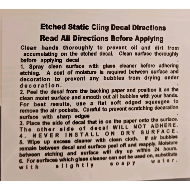 AS SHOWN ON MY DISPLAY PANEL,this Cow Scene Window Decal is a 4"x6" oval static cling with a white & clear etched glass look made of vinyl. Suitable for windows, cars, glass doors, and more. This can be used on any flat surface. Beautiful on mirrors. Keep away from heat. Easy to clean, just use window cleaner right over it. Reusable & removable with no glue. YOU WILL BE RECEIVING A BRAND NEW UNOPENED WINDOW CLING.