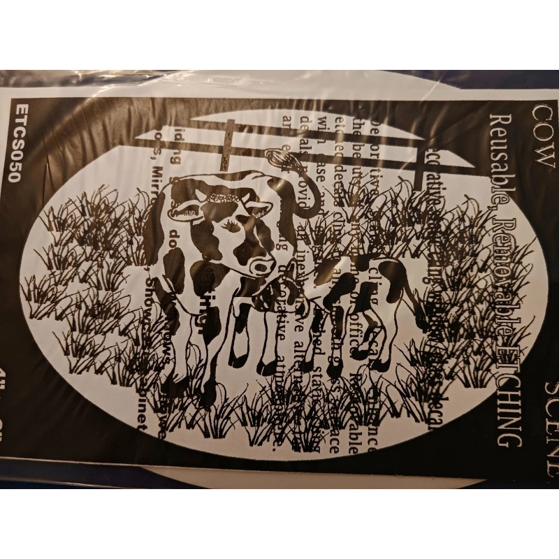 Vinyl Etchings Cow Scene Window Decal 4"x6" OVAL Etched Glass Look Cling Removable & Reusable