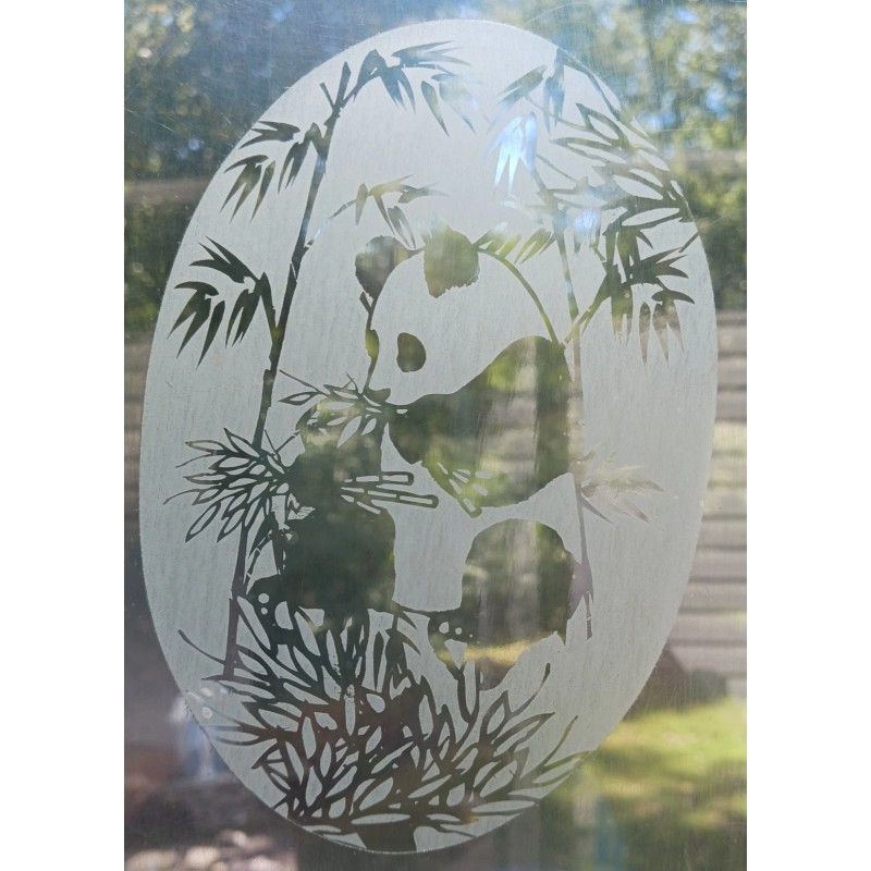 Vinyl Etchings Panda Bear Decal 4"x6" OVAL Etched Glass Look Cling Removable & Reusable