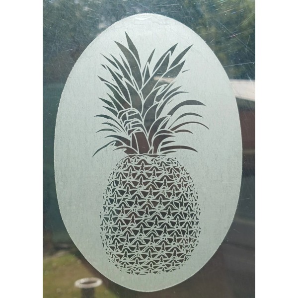Vinyl Etchings Pineapple Window Decal 4"x6" OVAL Etched Glass Look Cling Removable & Reusable