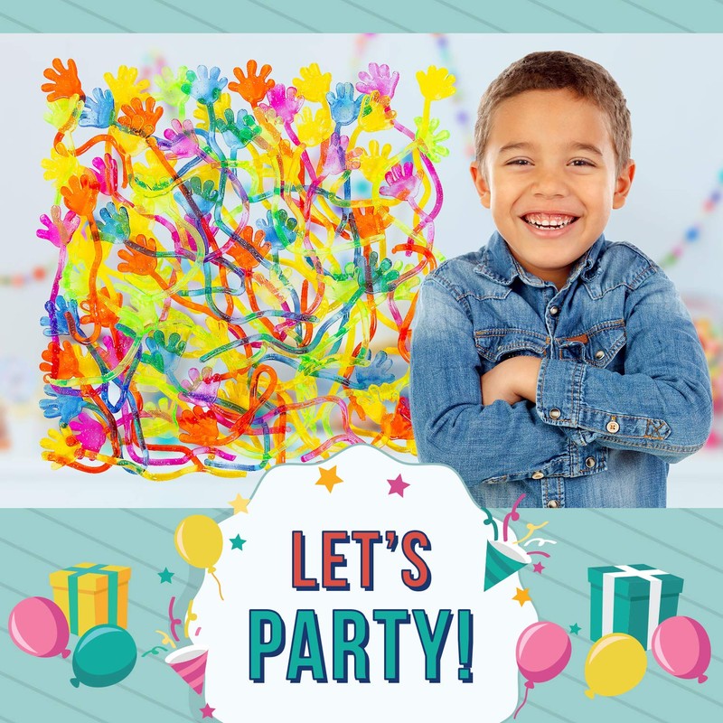 • These vinyl sticky hands are tons of fun. Colorful and glittery, kids will enjoy trying their hands at seeing what they can pick up with these sticky hand toys. An easy way to fill your classroom rewards chest and birthday party favor bags, too. Shop even more ooey gooey sticky toys for kids on our site. Individually wrapped. (6 dozen per unit) Each 1 1/4" sticky hand is on a 7" sticky string.