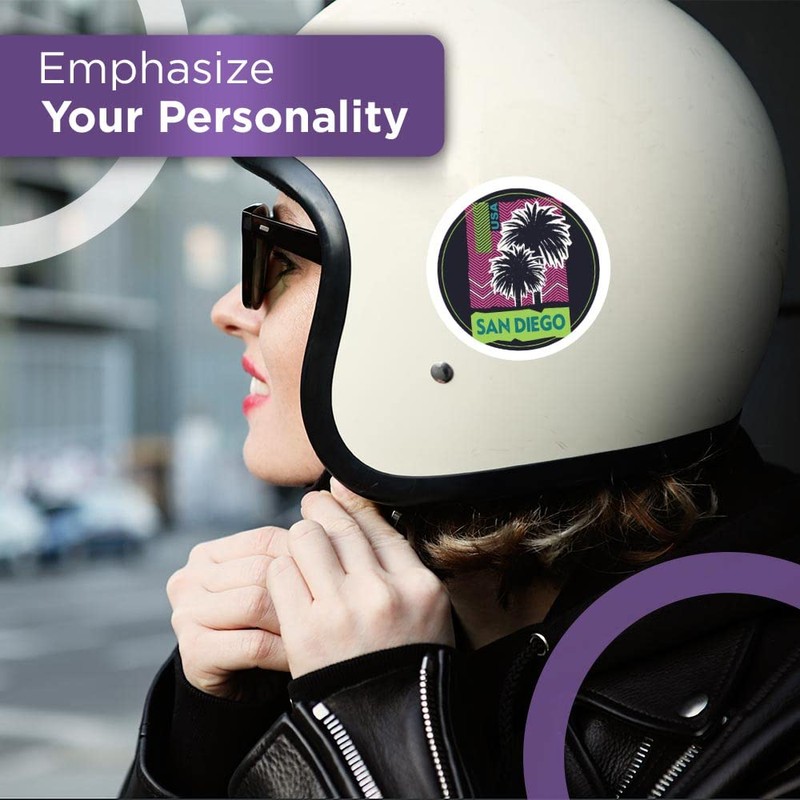 Vinyl Round Stickers (Set of 4) 10cm - San Diego USA Palm Vacation for Laptops, Tablets, Luggage, Scrap Booking, Fridges #59252