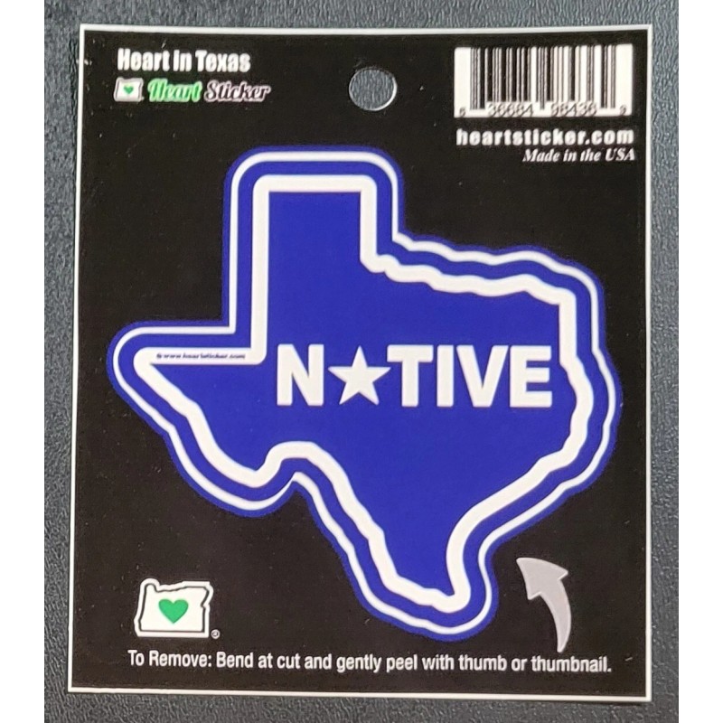 Vinyl sticker with the word "NATIVE" inside Texas.