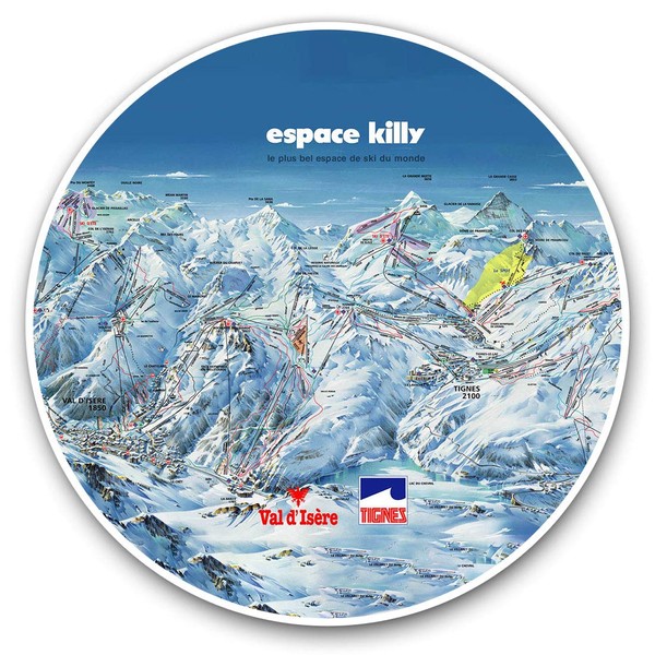 Vinyl Stickers (Set of 2) 10cm - Tignes Piste Map France Snowboarding Decals for Laptops,Tablets,Luggage,Scrap Booking,Fridges, 8435
