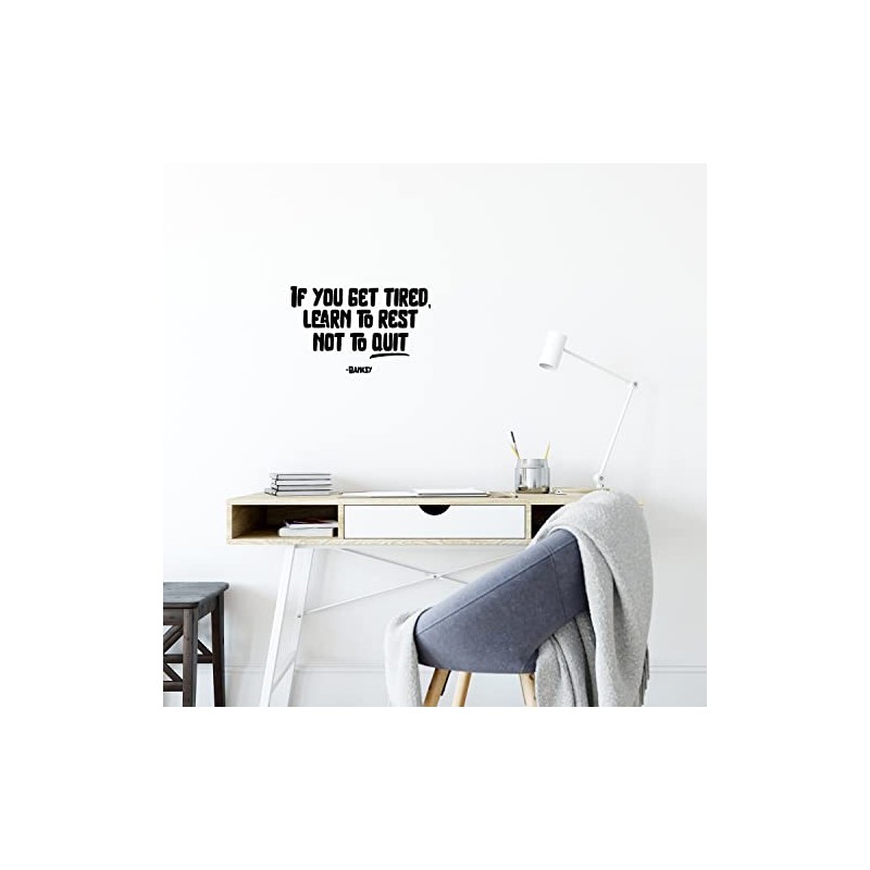 - ? Our high-quality vinyl adhesive decal quote "If You Get Tired Learn To Rest Not To Quit - Banksy" comes in 14 inches by 22 inches. The pictures are for display and inspiration only. All of our vinyl wall decals are manufactured with premium industrial grade Lutema self-adhesive vinyl.