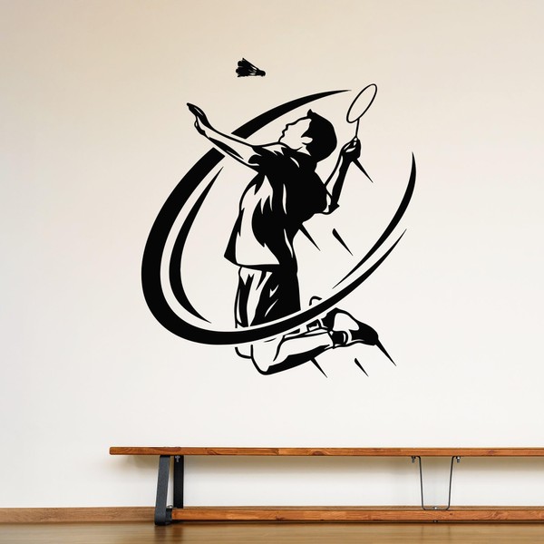 Vinyl Wall Decal Player with Racket Badminton Game Icon Stickers Mural Large Decor (L140) Black